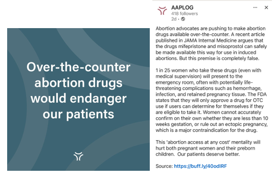 The American Association of Pro-Life Obstetricians and Gynecologists warns that over-the-counter abortion endangers women. Currently 1/25 women who take abortion drugs present in emergency departments with potentially life-threatening complications.