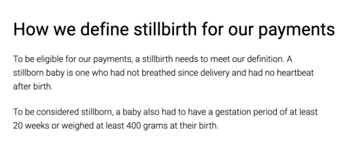 The Services Australia website explains that “to be eligible for our payments, a stillbirth needs to meet our definition” — and their definition is as follows: