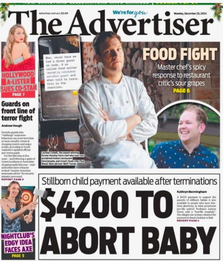 The lone article mentioned above was authored by the courageous Kathryn Birmingham, and originally appeared on the front page of The Advertiser on December 23 last year under the bold headline, “$4200 TO ABORT BABY”.