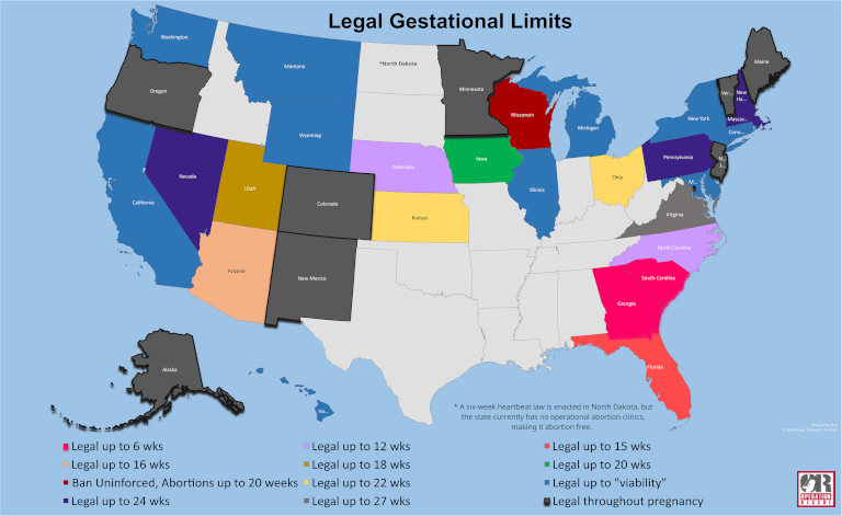 In the 36 states still performing abortions, legal gestational ages vary significantly.