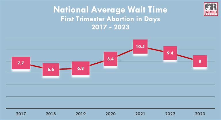 Contrary to the left’s talking points and fear mongering, wait times for first trimester abortion have continued to fall. The average amount of time a woman was required to wait for an abortion in the U.S. was eight days – a 15% drop from last year and the shortest wait time since 2019.