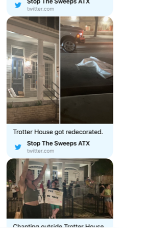 The perpetrators carried homemade signs, attempting to affix some on the Trotter House mailbox, front door, and other areas.