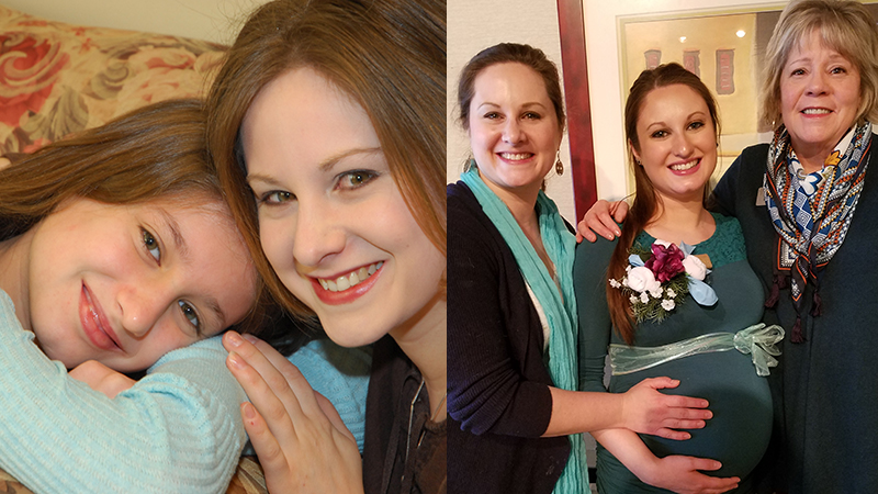 Left: Ariana as a young girl with her mother, Stephanie | Right: Peggy Benicke with Ariana and Stephanie at Ariana's baby shower | Photo Courtesy: Robbinsdale Women's Center