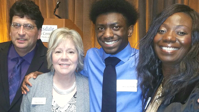 Manzaler and her son Keyanu with Peggy Benicke and her husband at the center's banquet this spring. Keyanu closed the event in prayer. | Photo Courtesy: Robbinsdale Women's Center