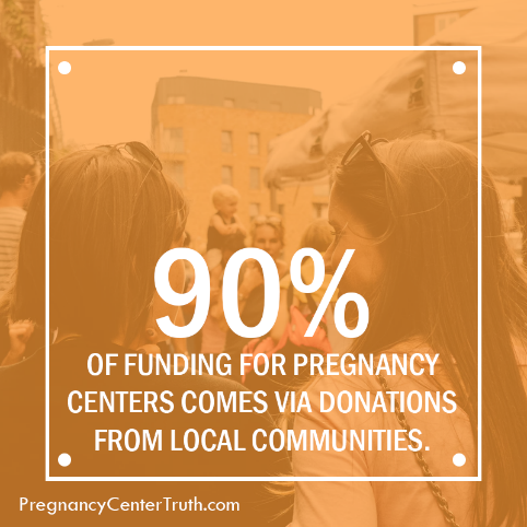 - 90 percent of funding for pregnancy help centers comes via donations from local communities, not from government sources or charging clients for services provided.